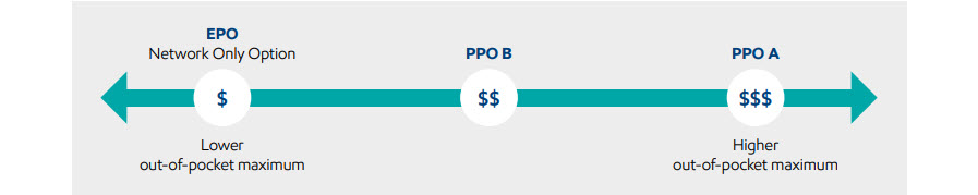 The EPO, which is the network only option, has a lower out-of-pocket maximum than the PPO options.