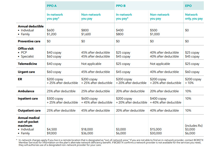 BCBSTX negotiates with doctors, hospitals and other providers to charge less for services received in-network. When you choose a provider who is “in-network,” it means you will pay less out of pocket. Different options are available to you depending on where you live.